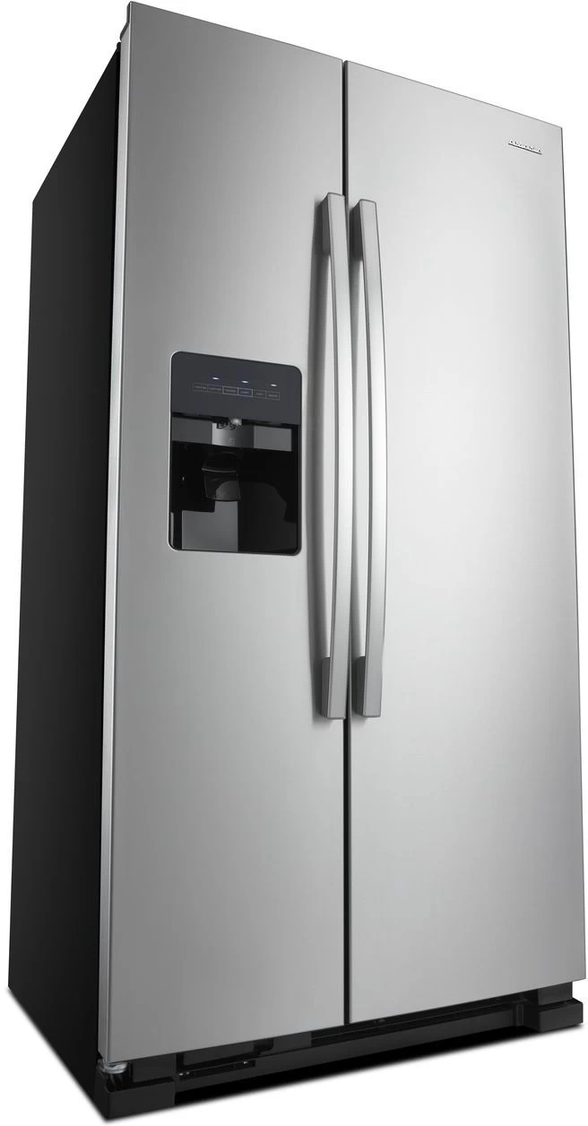 Our 36-inch Amana® Side-by-Side Refrigerator makes food storage simple. This 25 Cu. Ft. refrigerator with ice and water dispenser lets you grab fresh H2O and go using a Dual Pad Dispenser with EveryDrop™ Water Filter. Easily set temps with Electronic Temperature Controls. And big items like juice cartons fit in the Gallon Door Storage Bins to stay in sipping range.
