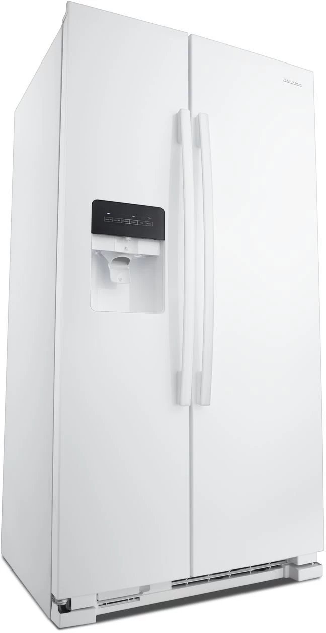 Our 36-inch Amana® Side-by-Side Refrigerator makes food storage simple. This 25 Cu. Ft. refrigerator with ice and water dispenser lets you grab fresh H2O and go using a Dual Pad Dispenser with EveryDrop™ Water Filter. Easily set temps with Electronic Temperature Controls. And big items like juice cartons fit in the Gallon Door Storage Bins to stay in sipping range.