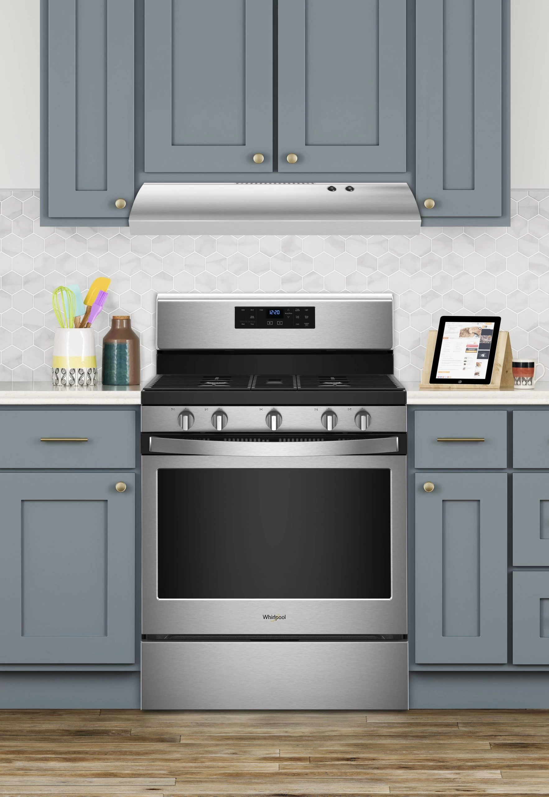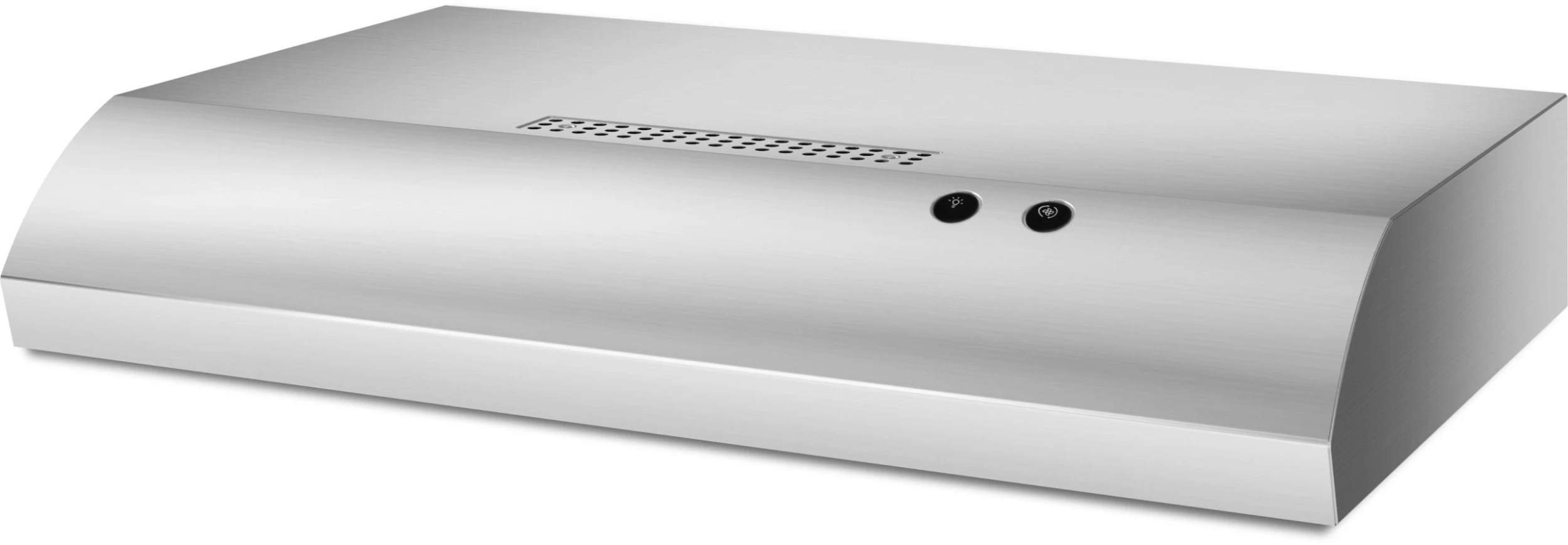 Installing this stove hood is quick and easy. The FIT system eliminates measuring, cutting and filler strips for a smooth fit every time. Once installed, the hood vent kitchen fan operates at a quiet 45 dBA (0.8 sones) at its lowest of two fan speeds so it won’t disturb family time in the kitchen. Plus, incandescent lighting helps you keep a close eye on food so each dish turns out the way you want it to.