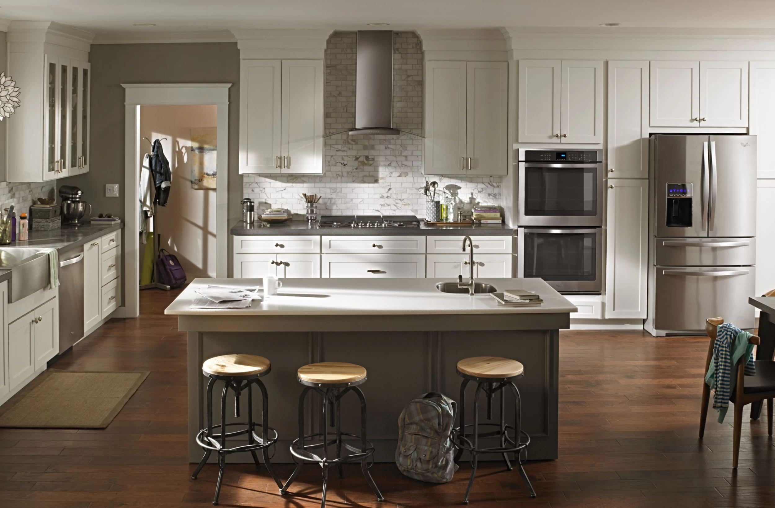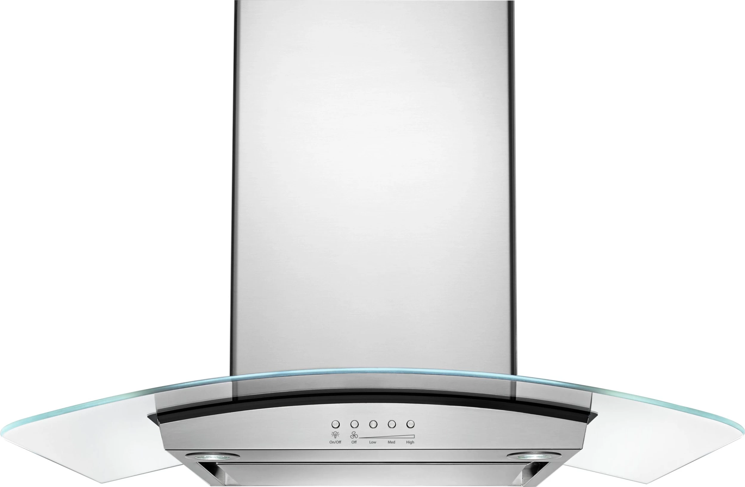 This glass wall mount kitchen hood provides a modern look. It helps remove smoke and odors by concentrating hood suction to targeted zones on your cooktop with Perimetric Venting technology and a 3-speed, 400 CFM motor class. Noise reduction technology features sound insulation and a special chimney design to provide a quiet kitchen ventilation system. When venting at low speed, sound levels can get as low as 49 dBA. It’s easy to see what you’re cooking with efficient LED task lighting, and the range hood’s glass edge LED lighting acts as a night-light by sensing when your kitchen lights dim and automatically turning on.