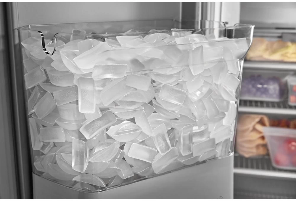This premium 48” built-in refrigerator with exterior ice and water dispenser features PrintShield™ finish to resist fingerprints outside, and has innovative storage inside. Like the Under-Shelf Prep Zone with included bakeware, and the moisture- and stain-resistant Wood-Look Pull Out Tray that keeps ingredients beautifully organized. Plus, optimal temperatures for ingredients are maintained with the ExtendFresh™ Plus Temperature Management System.