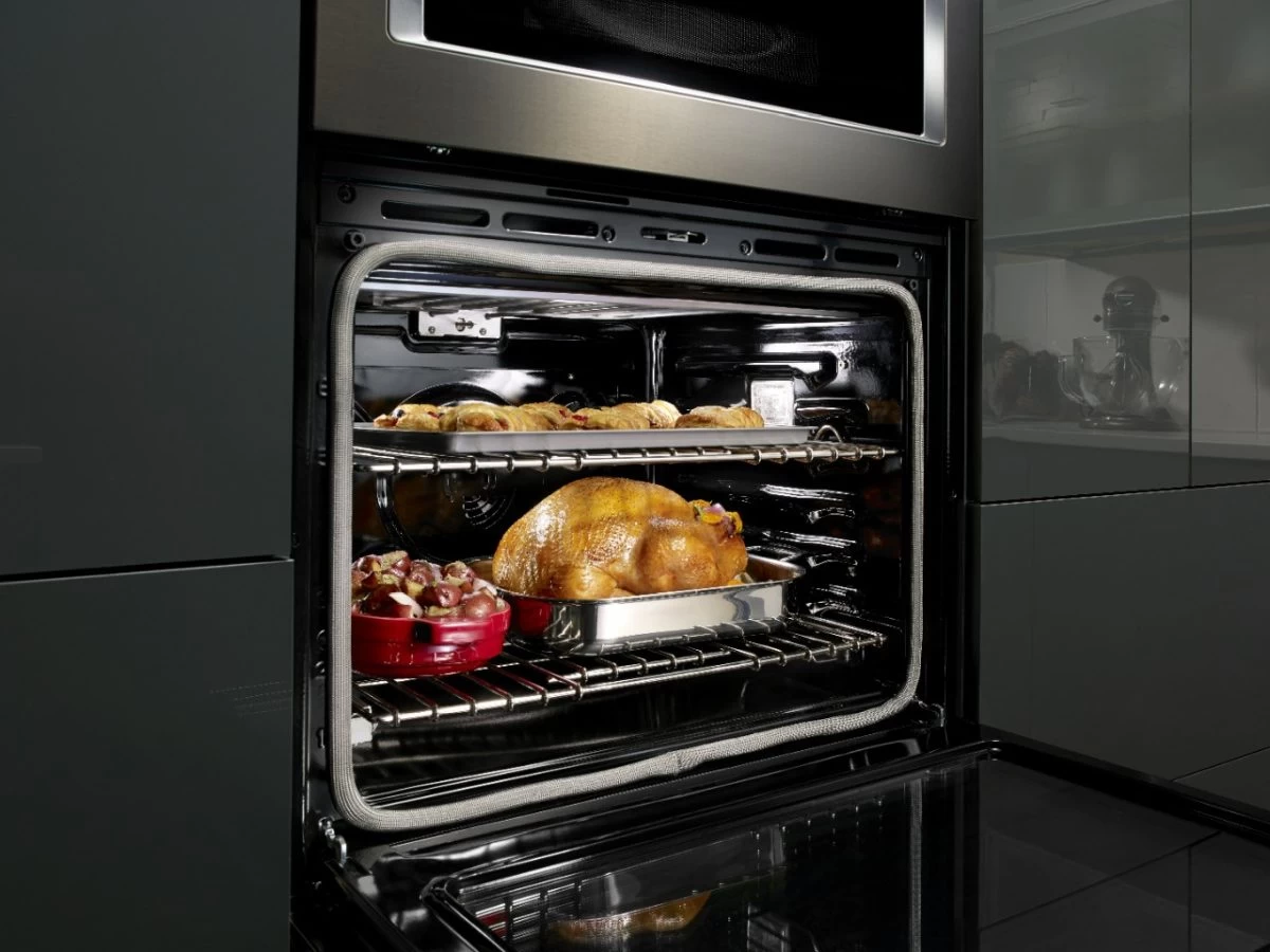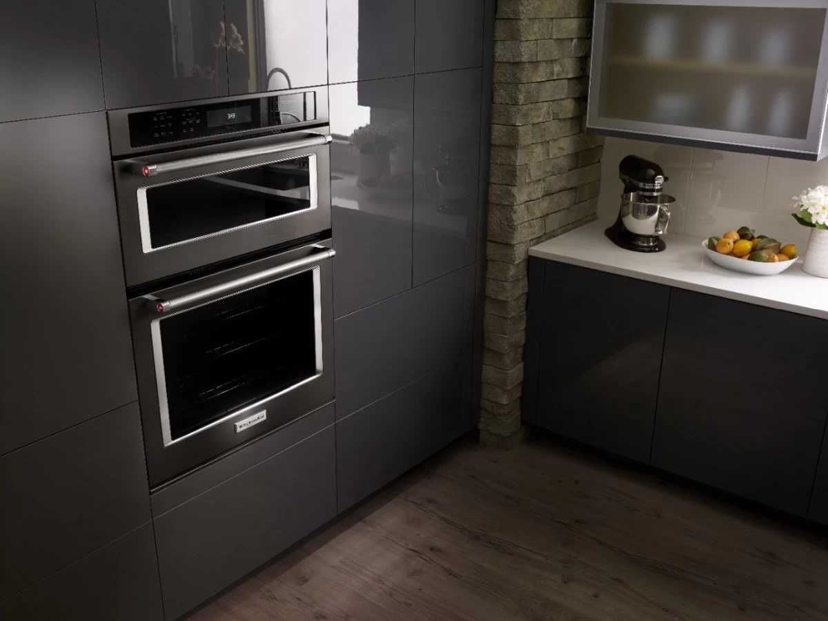 This 30″ Combination Wall Oven with Even-Heat™ True Convection provides consistent heating and even cooking. A unique bow-tie shaped design and convection fan helps ensure there are no burnt edges or undercooked centers. Its upper Microwave Convection Cooking Oven combines a 900 watt microwave with a 1600 watt convection element for high speed cooking. Bold design details are the perfect balance of elegance and functionality.
