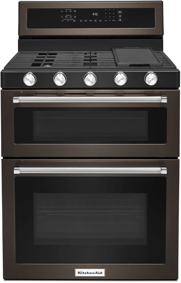 Be the first to review “KitchenAid® 30″ Black Stainless Steel With PrintShield™ Finish Free Standing Gas Double Convection Range” Cancel reply