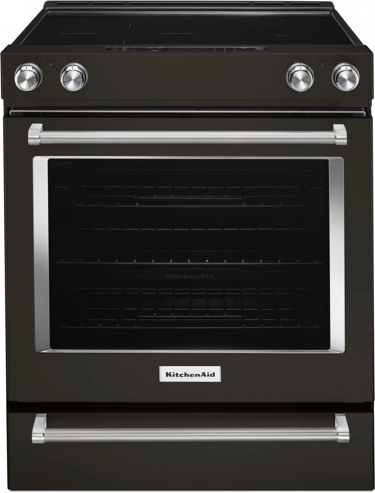 Be the first to review “KitchenAid® 30″ Black Stainless Steel With PrintShield™ Finish Slide In Electric Convection Range” Cancel reply