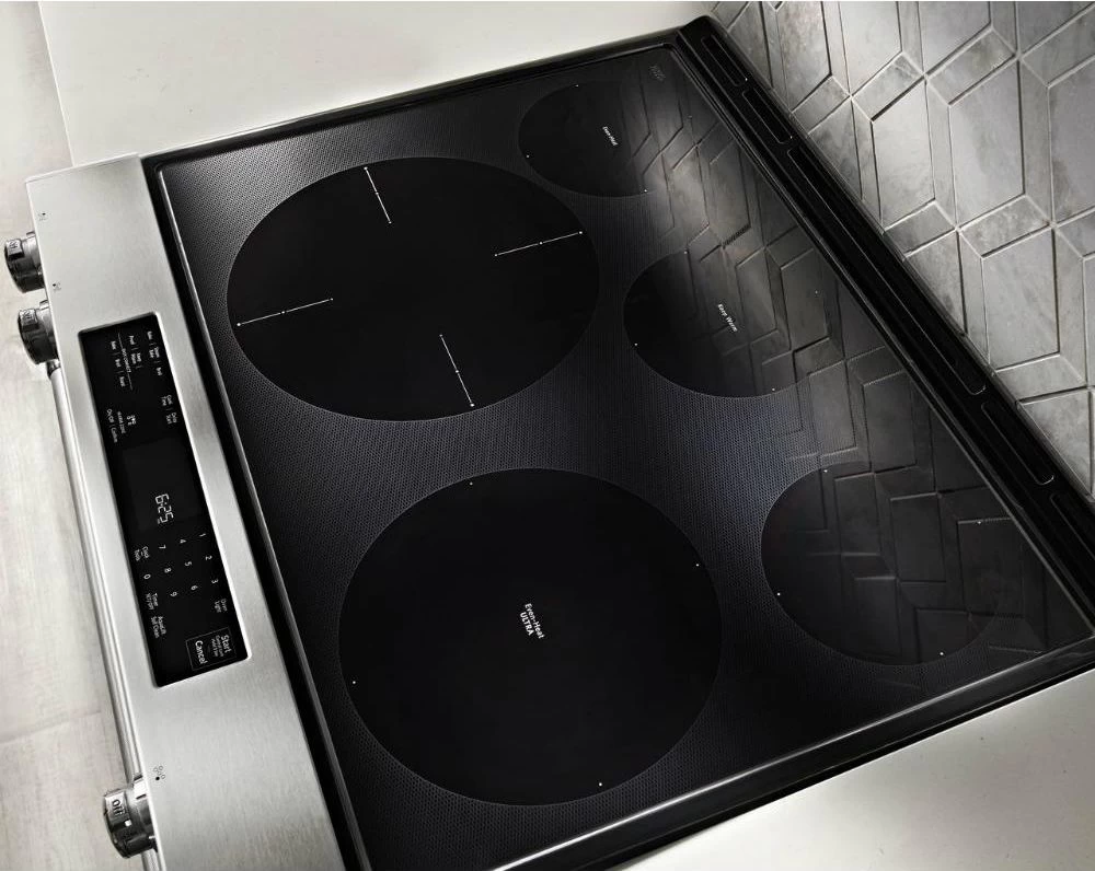 This beautiful electric range produces flawless cooking results with Even-Heat™ True Convection. The unique bow-tie design and convection fan ensure the inside of the entire oven is heated to, and stays at, the perfect temperature. This range also features a Steam Rack that adds additional moisture to the inside of the oven, enhancing cooking results. The oven is 6.3 cu ft., providing an extra-large cooking capacity that’s perfect for preparing multiple dishes at once.