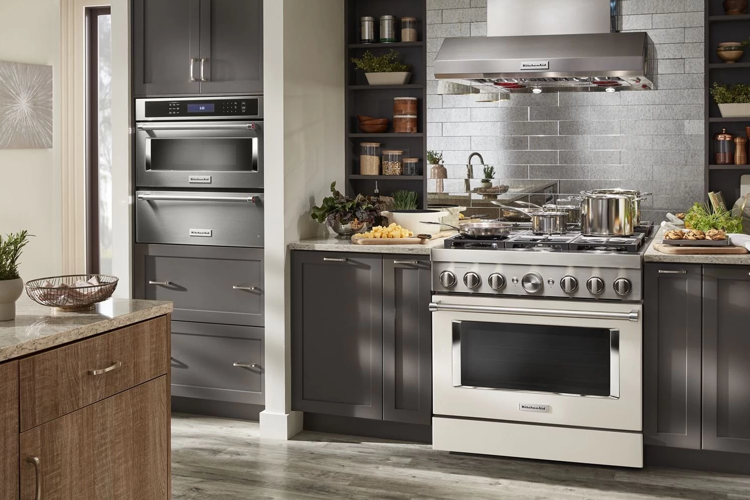 Be the first to review “KitchenAid® 36″ Milkshake Commercial-Style Free Standing Dual Fuel Range” Cancel reply