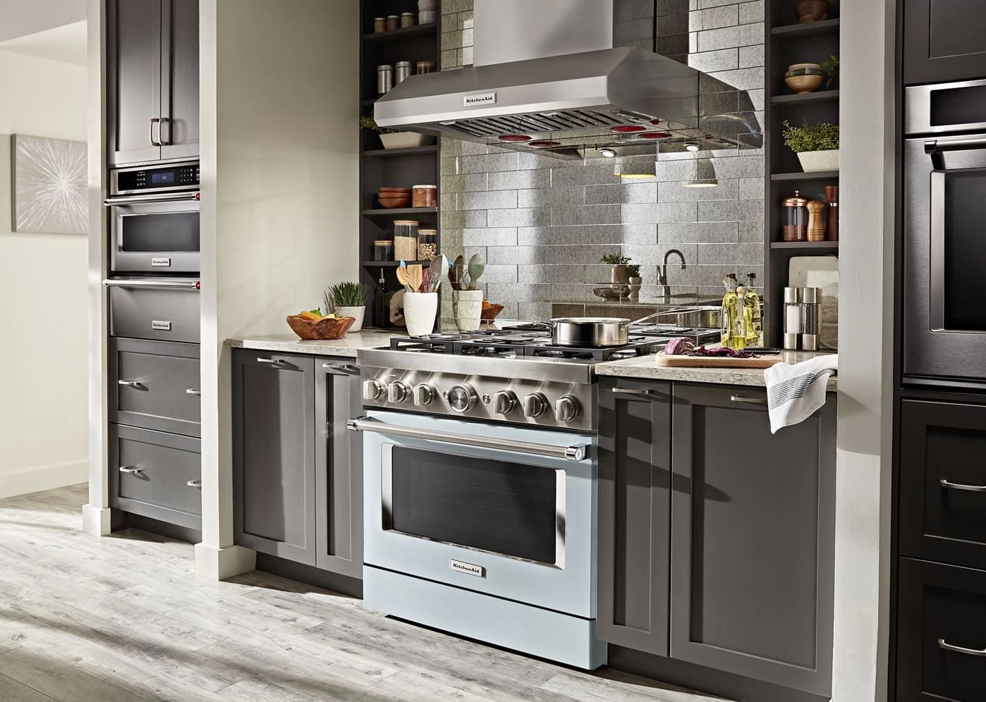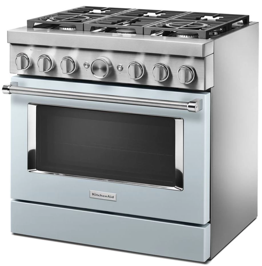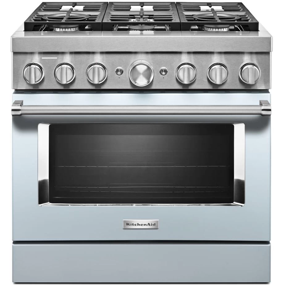 Be the first to review “KitchenAid® 36″ Misty Blue Commercial-Style Free Standing Dual Fuel Range” Cancel reply