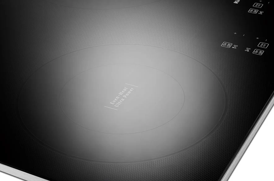 This 36″ electric cooktop combines the lasting beauty of a black glass surface with the performance of a 10” Even-Heat™ Ultra Power™ Element with Simmer Setting, two 6” Even-Heat™ Elements with Melt Setting, and 12”/9”/6” Triple-Ring Round Element that maximizes your flexibility with three distinct rings to allow for element selection based on cookware size.