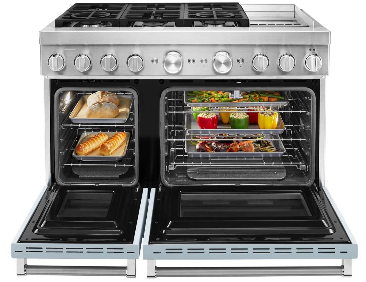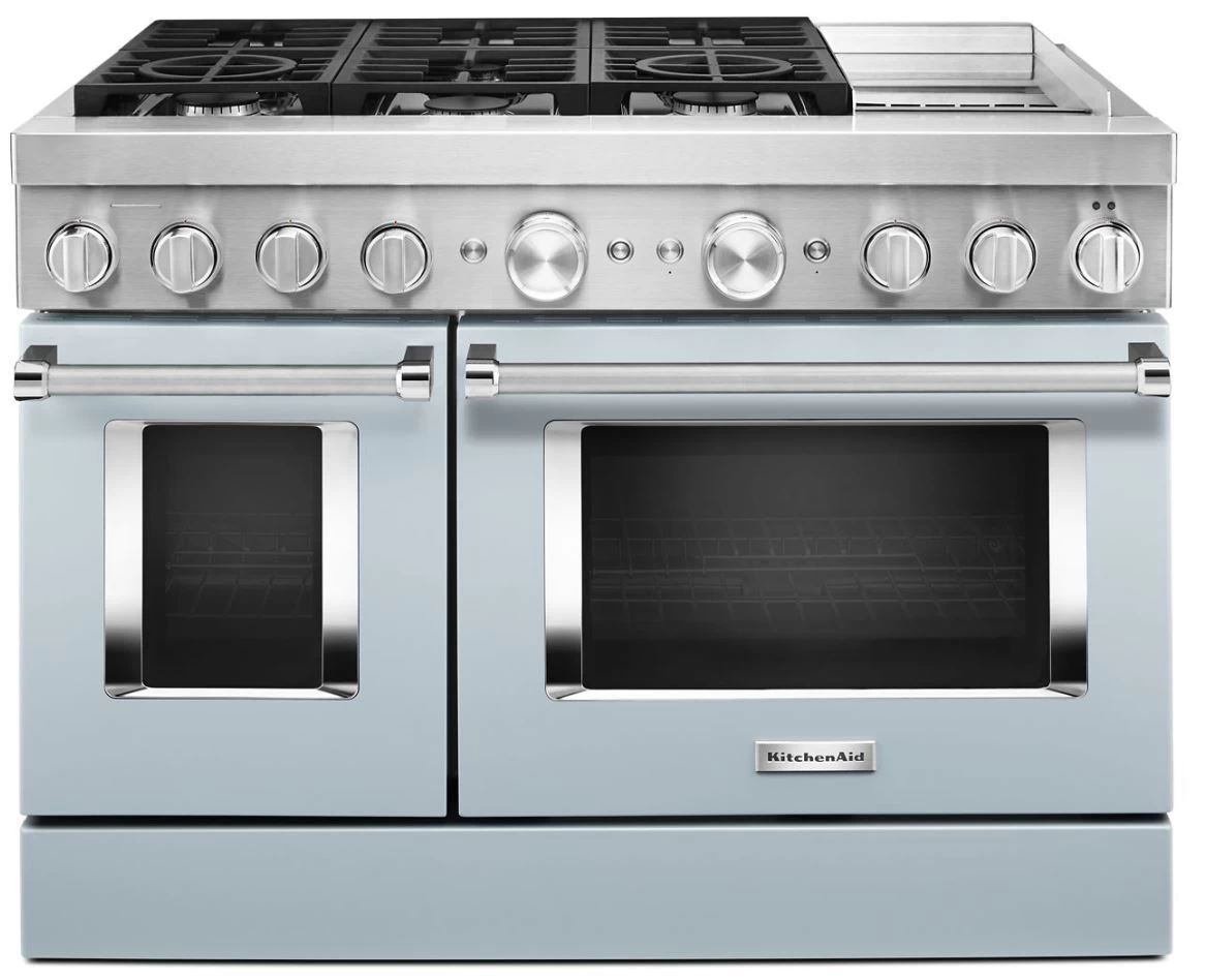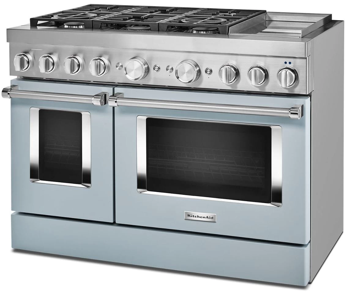 Be the first to review “KitchenAid® 48″ Misty Blue Commercial-Style Free Standing Dual Fuel Range With Griddle” Cancel reply