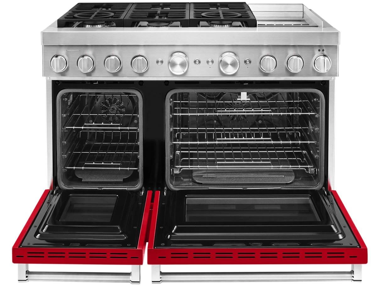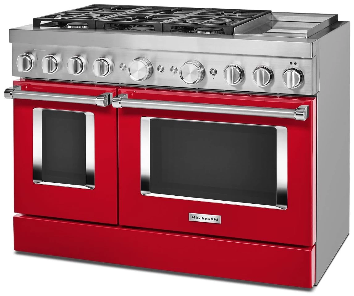 Be the first to review “KitchenAid® 48″ Passion Red Commercial-Style Free Standing Dual Fuel Range With Griddle” Cancel reply