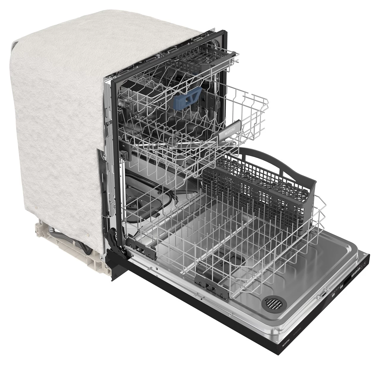Maytag® dishwashers featuring the Third Level Rack with specialized wash zone deliver more loading space and cleaning power, while heated dishwasher drying options reduce excess moisture. Plus, Dual Power filtration, an industry-exclusive dishwasher filtration system, disintegrates any food in its path, letting you skip the soaking, scrubbing and prerinsing.