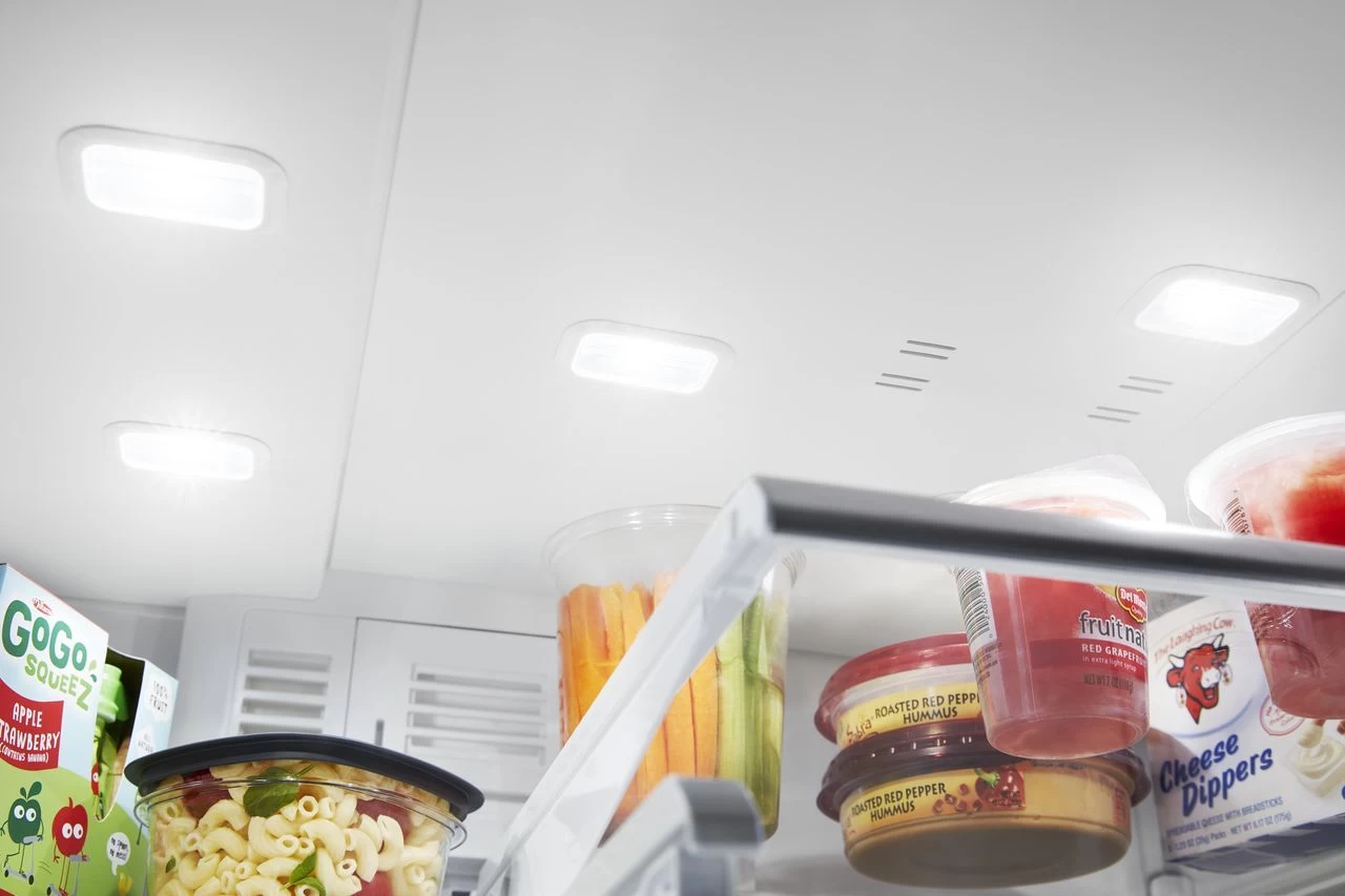 Long-lasting BrightSeries™ LED lighting casts a bright, white light and uses less energy than incandescent bulbs. Humidity-controlled FreshLock™ crispers provide plenty of space for produce and help keep your greens tasting great and your fruits full of flavor.