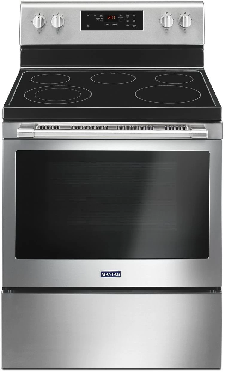 Easy-to-clean, fingerprint resistant stainless steel keeps your range looking as good on the outside as it works on the inside. There’s plenty of space to cook everyday meals with this Maytag® electric range’s 5.3 cu. ft. capacity.