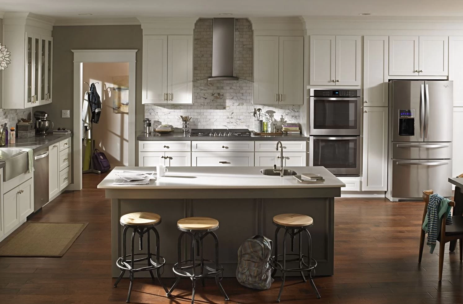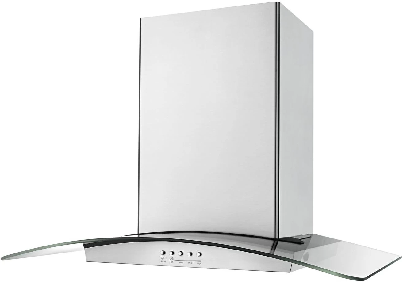 This glass wall mount kitchen hood provides a modern look. It helps remove smoke and odors by concentrating hood suction to targeted zones on your cooktop with Perimetric Venting technology and a 3-speed, 400 CFM motor class.