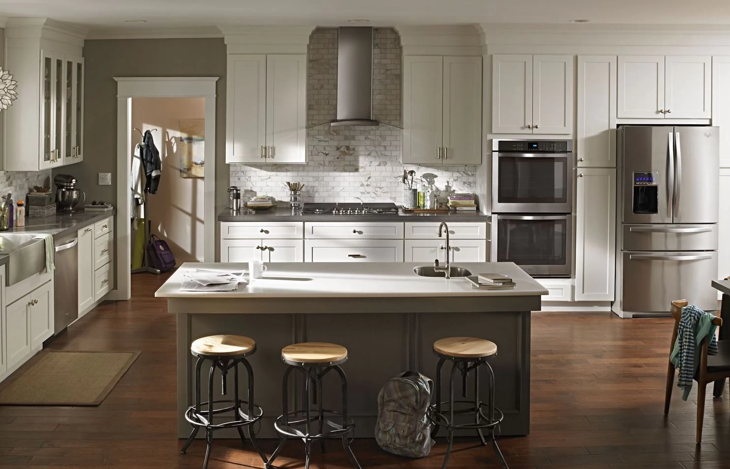 Get a modern look and quiet, effective ventilation for all of your cooking with this 3-speed, 400 CFM motor class glass island kitchen hood. Noise reduction technology provides sound insulation and a special chimney design to deliver sound levels as low as 49 dBA at low speed.