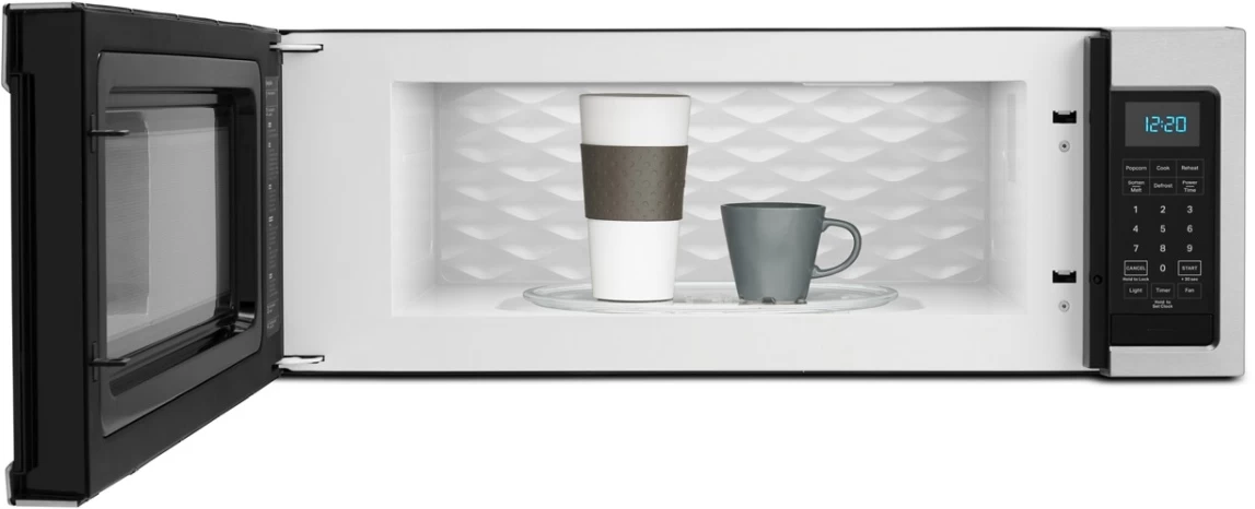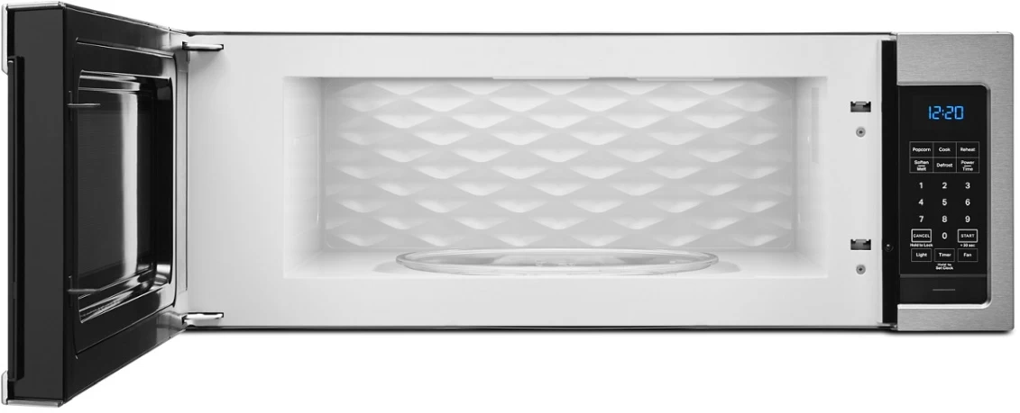 Find a better fit for your kitchen with this small over-the-range microwave with 2-speed vent that removes smoke, odor and moisture like a standard hood. Save space with a low profile design that fits your undercabinet hood space
