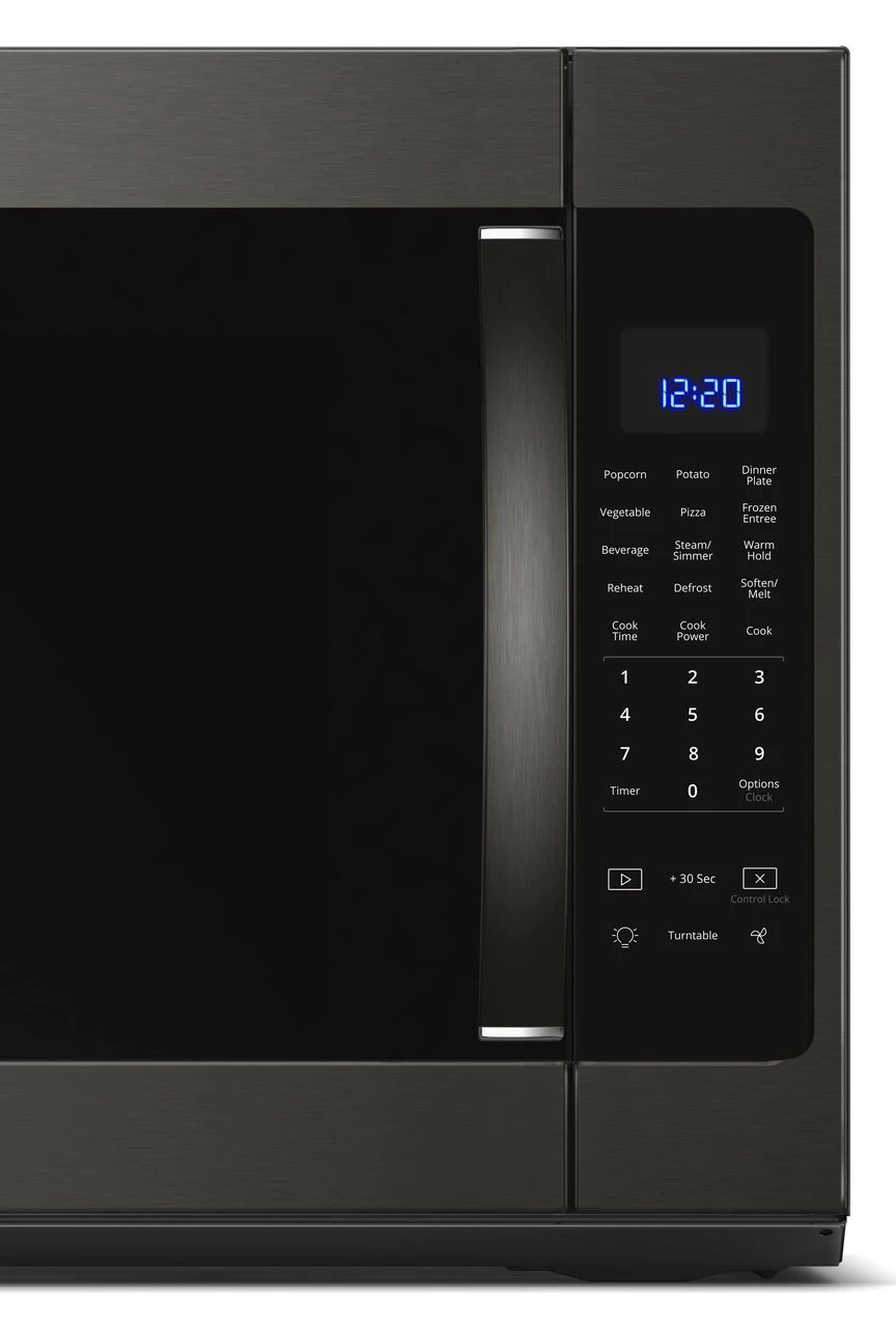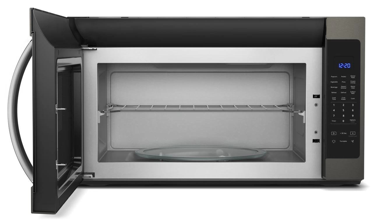 Whirlpool® Over The Range Microwave-Fingerprint Resistant Black Stainless Steel with 2.1 cu. ft. capacity, sensor cooking and steam cooking
