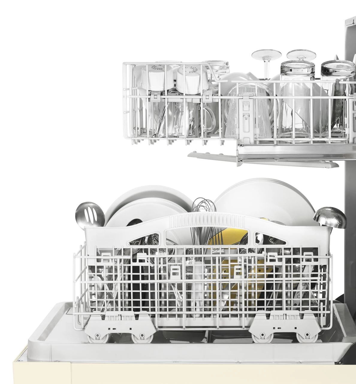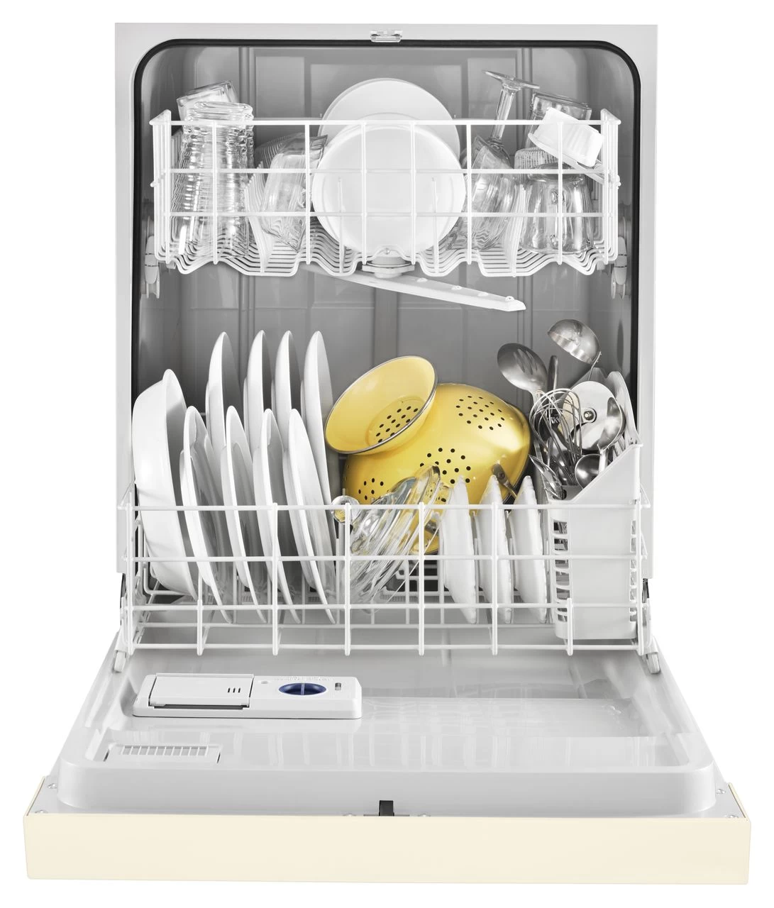 Whirlpool® 24″ Built In Dishwasher-Biscuit with push button control, 3 wash cycles and removable filter