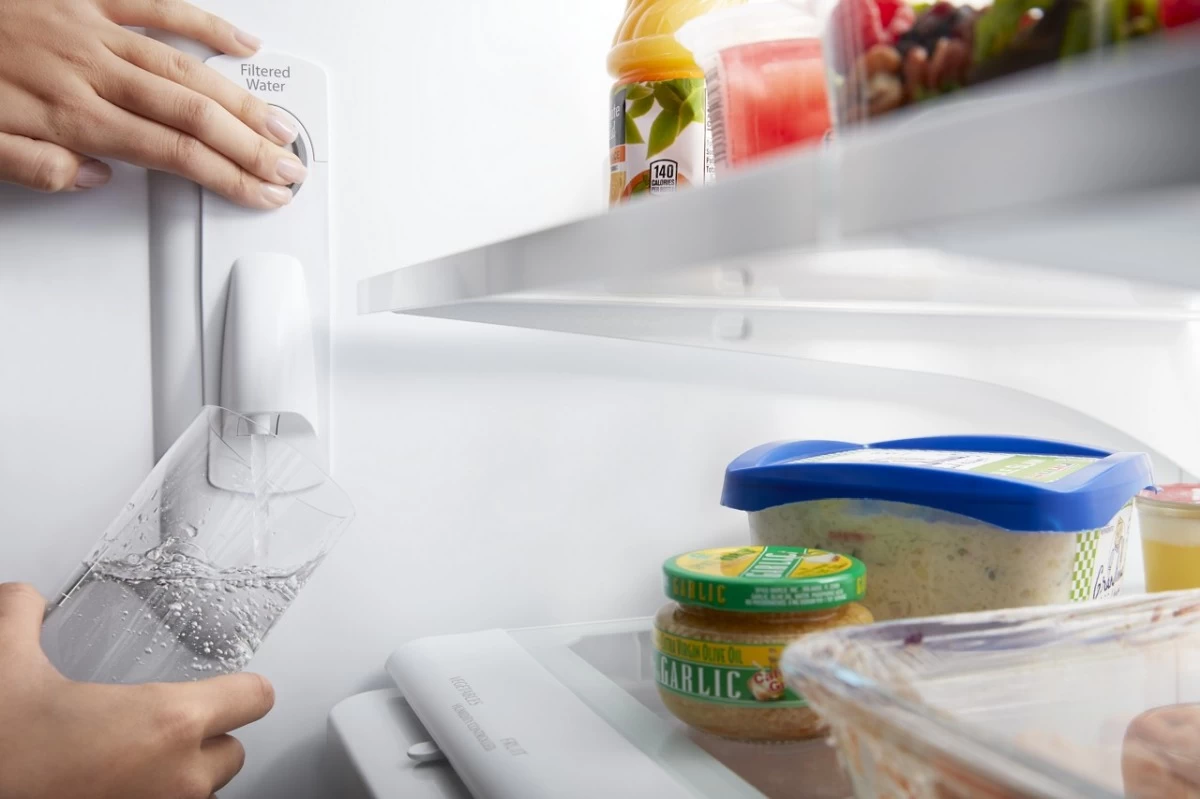 Get the storage your family needs and easily access filtered water with this refrigerator with water dispenser. Crisper drawers provide room to store fruits and veggies in their ideal environment while the produce preserver helps produce stay fresher longer.