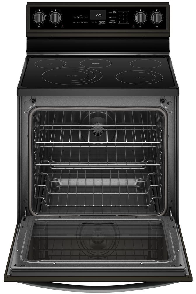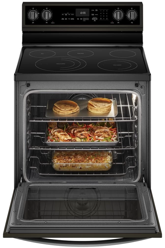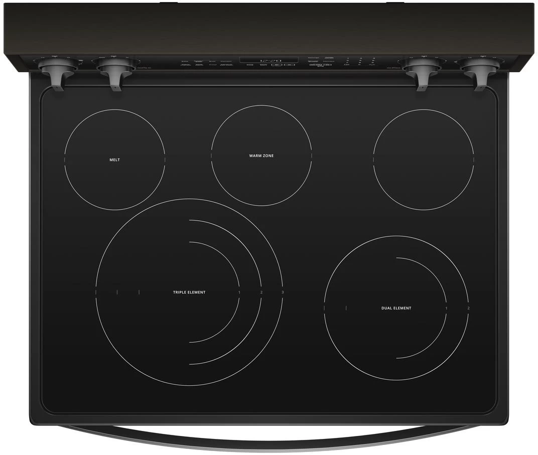 Whirlpool® 30″ Freestanding Electric Range-Fingerprint Resistant Black Stainless Steel with 6.4 cu. ft. total capacity, warm zone element and hot surface indicator light