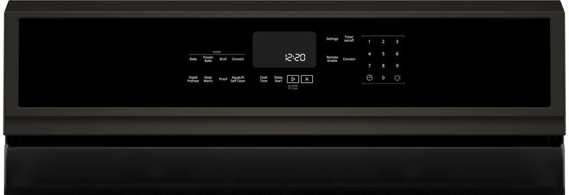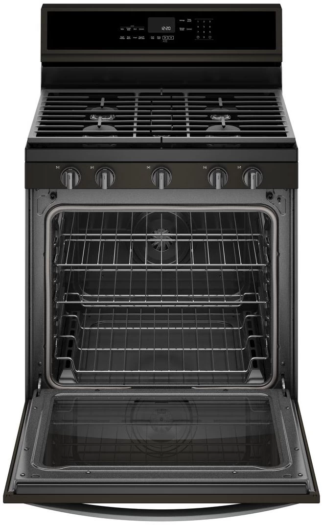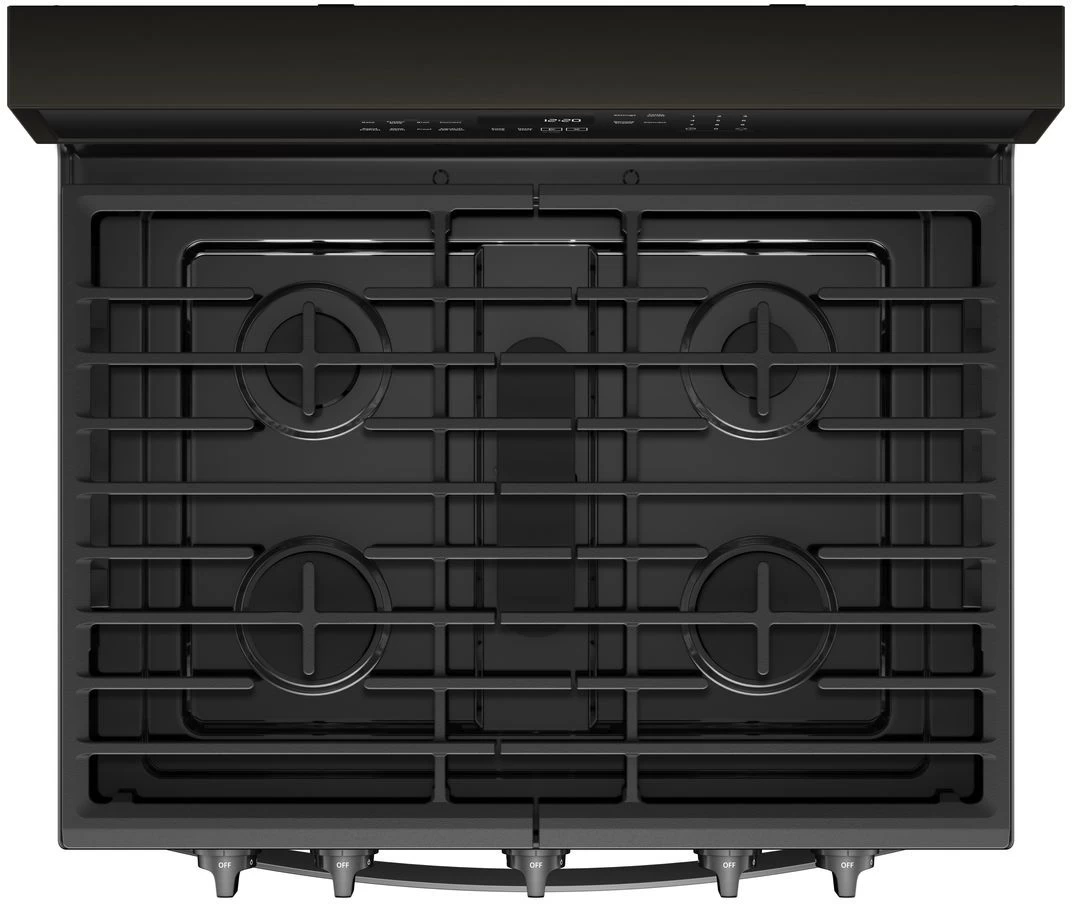 Whirlpool® 30″ Freestanding Gas Range-Fingerprint Resistant Black Stainless Steel with 5.8 cu. ft. total capacity, hidden bake element and AquaLift® Self-Cleaning Technology