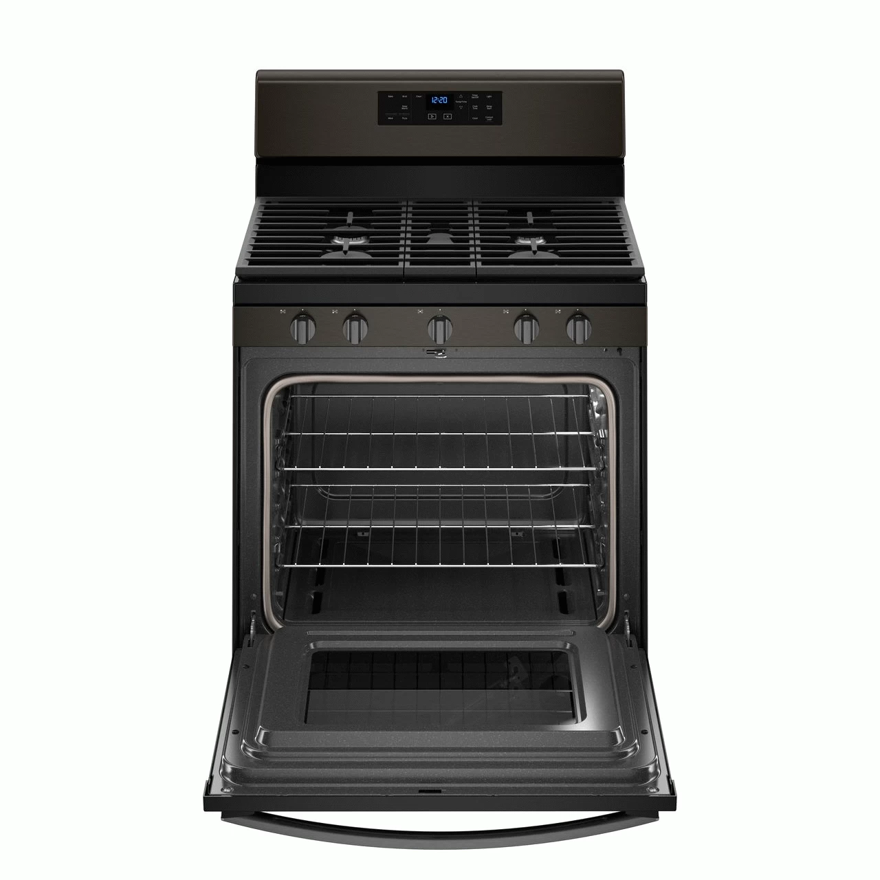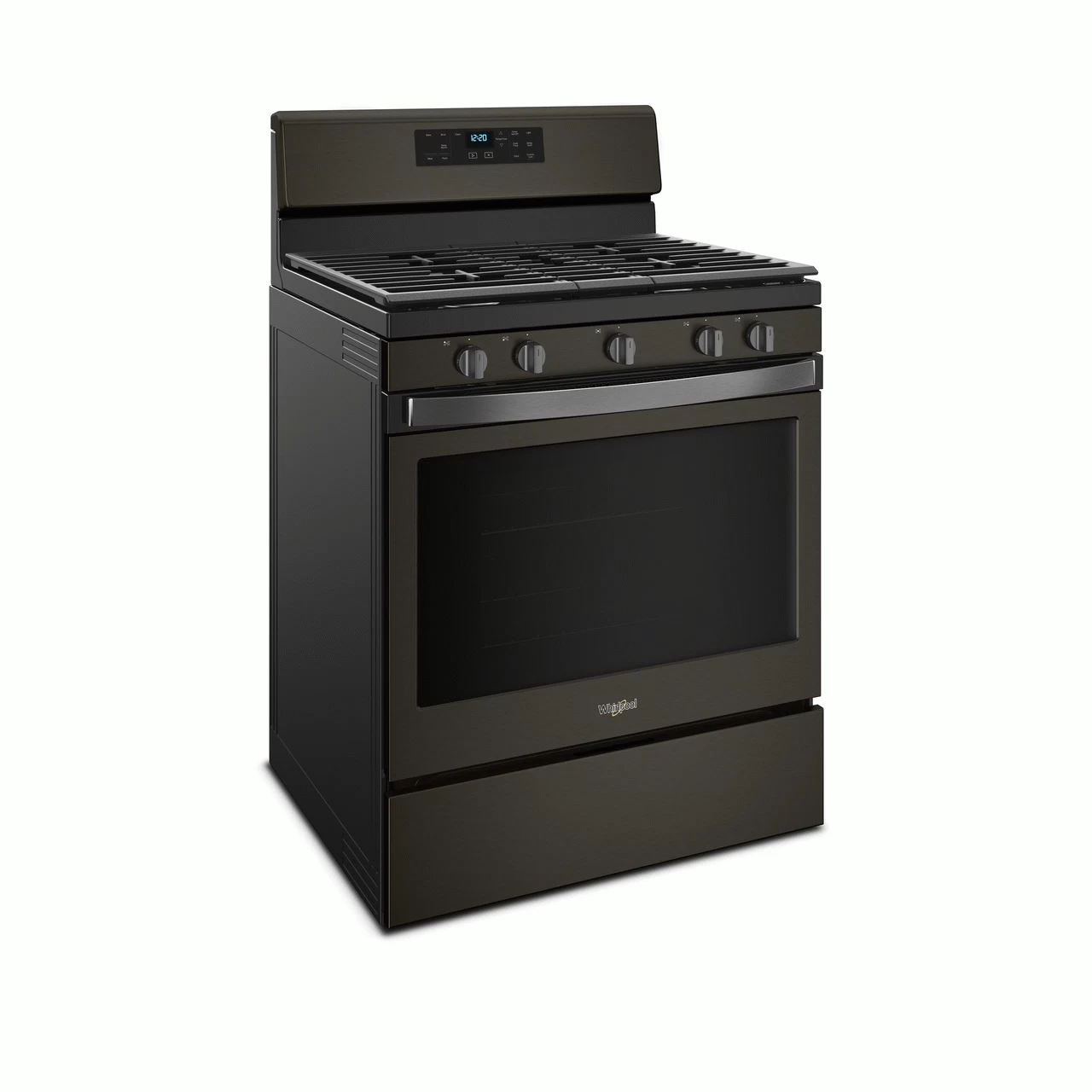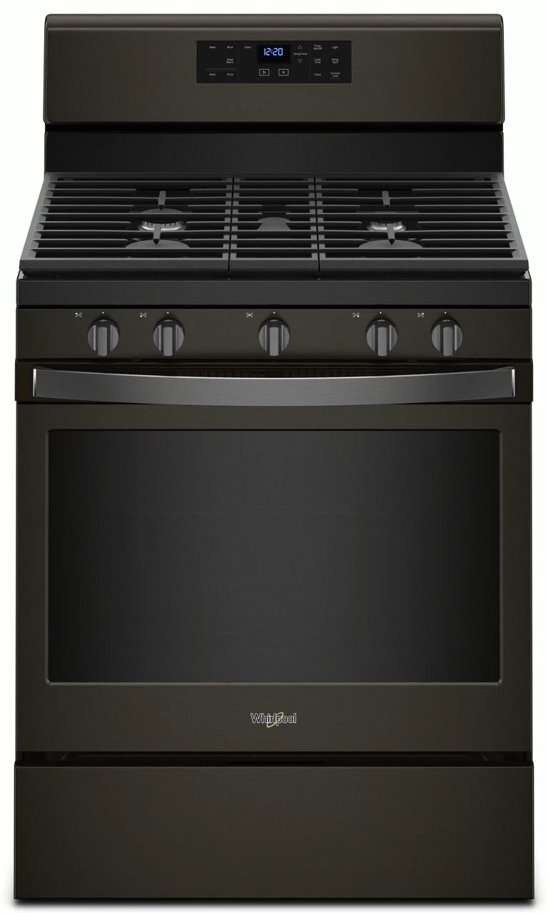 Whirlpool® 30″ Free Standing Gas Range-Fingerprint Resistant Black Stainless with 5.0 cu. ft. total capacity, 5 elements and Frozen Bake™ technology