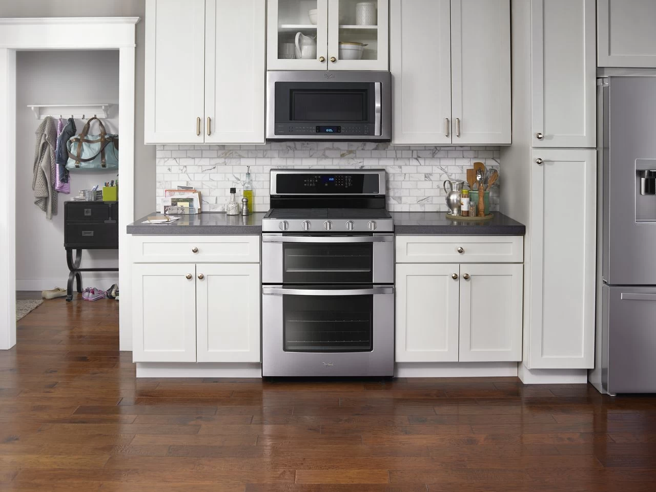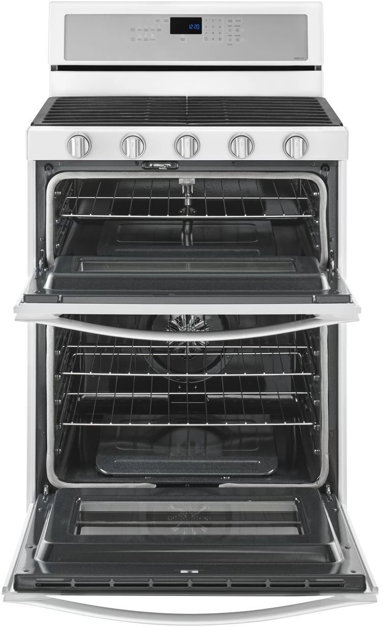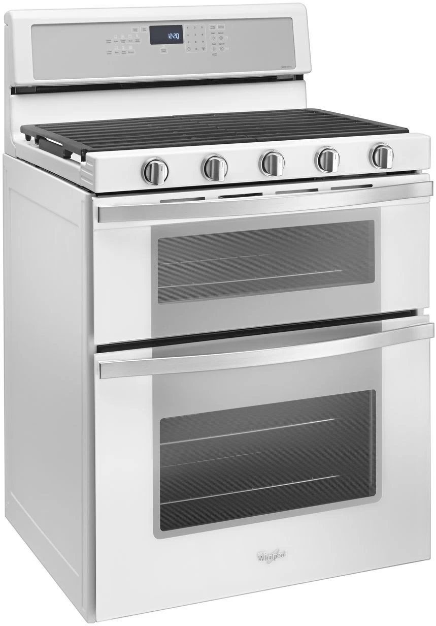 Whirlpool® 30″ Gas Built In Double Oven-Stainless Steel with 6.0 cu. ft. total capacity, dishwasher safe knobs and center oval burner