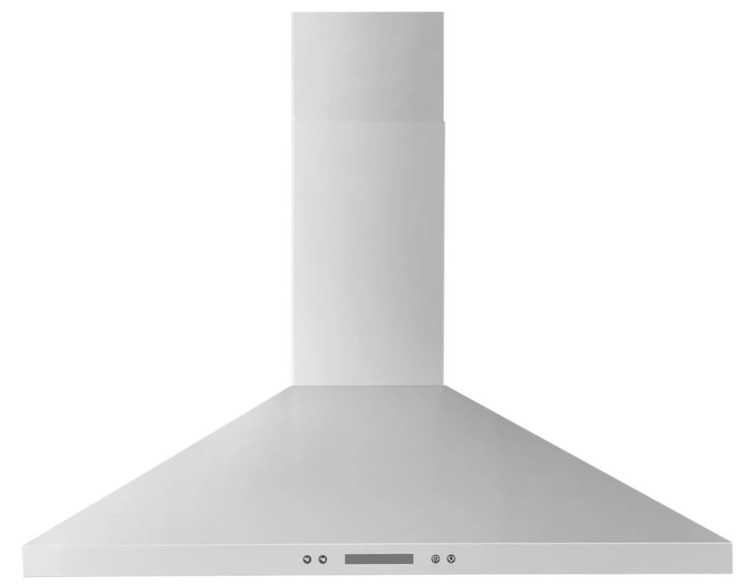 This 36″ 400 CFM Motor Class range hood delivers three speeds of powerful ventilation. This wall mount range hood also comes with a detachable grease filter that is dishwasher-safe for easy cleaning, LED range hood lights and a 65K BTU cooktop threshold.