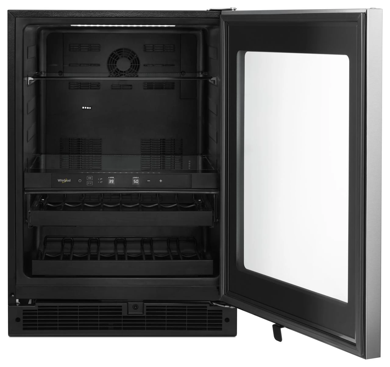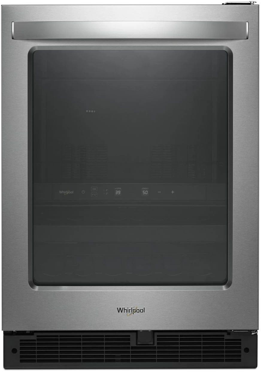 Whirlpool® 5.2 Cu. Ft. Wider Undercounter Beverage Center-Fingerprint Resistant Stainless Steel with wine storage and reversible glass door